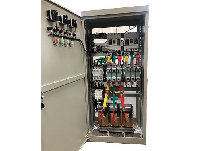 該電柜適用于三相220v、三相380v、三相440v電機,特別適用于制砂機,該電柜采用自耦降壓啟動,其中一臺電機降壓啟動,啟動完畢實行自動轉(zhuǎn)換,然后兩臺電機全壓運行。