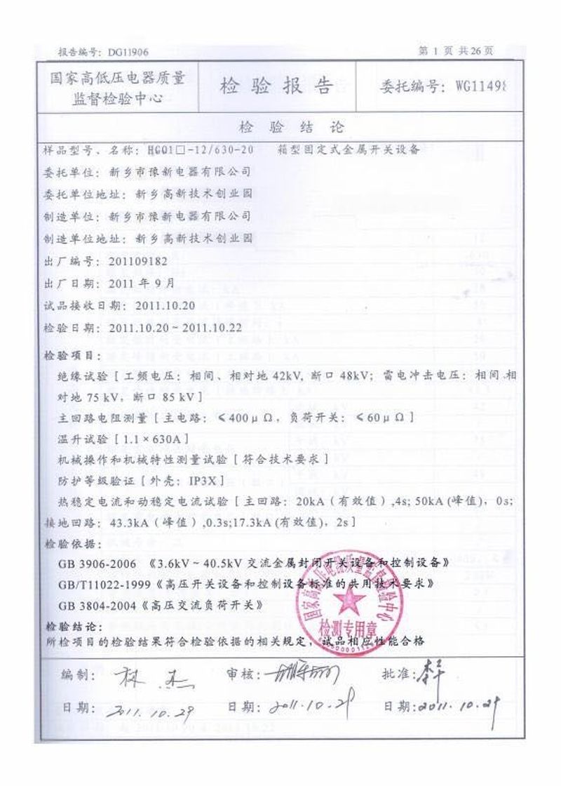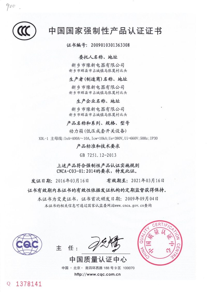已通過ISO9000國(guó)際質(zhì)量管理體系認(rèn)證;產(chǎn)品注冊(cè)‘豫新’牌商標(biāo),低壓動(dòng)力控制柜通過國(guó)家強(qiáng)制性CCC認(rèn)證,低壓降壓?jiǎn)?dòng)柜曾經(jīng)天津低壓電器研究所、蘇州電器研究所有限公司檢測(cè)合格
